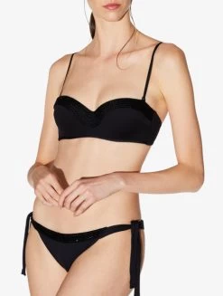 The embodiment of exceptional craft and striking sophistication, the powerfully feminine Luci Di Capri Bandeau Bikini Top in Black is cut to a timeless, underwired silhouette with removable padding. Crafted from luxurious soft-stretch microfiber that perfectly frames and flatters, it’s finished with undulating waves of jet black beads, embroidered on a tulle panel with our signature soutache technique. Complete the look with the Luci Di Capri High-Waisted or Bikini Briefs.