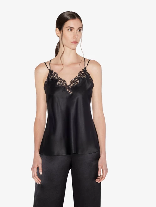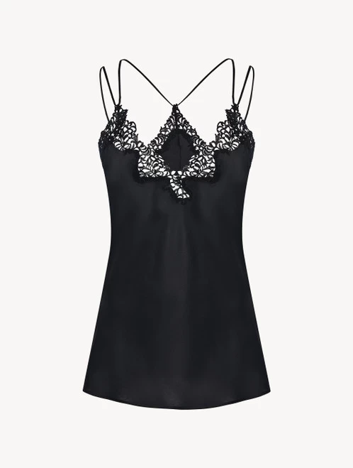 This exquisite camisole from the iconic Petit Macrame collection has been cut from pure silk and trimmed with one of La Perla’s signature artisan crafts, macrame. Applied using the Florentine art of frastaglio, this rare and precious detail exudes pure luxury. Cut with crossover strap detail to the reverse, this elegant camisole frames the bust with a plunging neckline and a relaxed fit through the body.