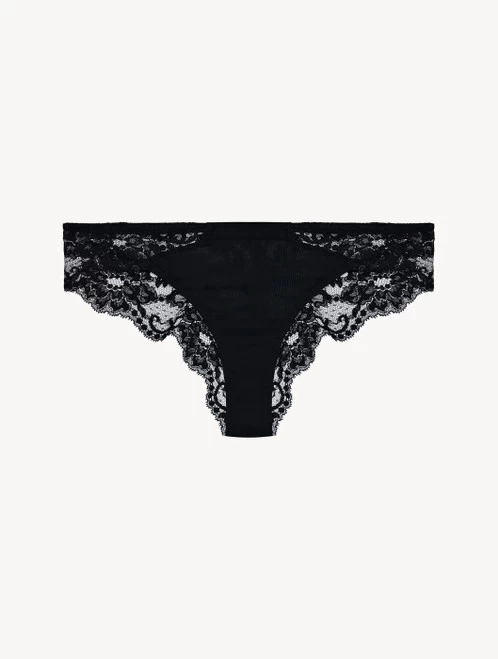 Brazilian briefs in floral stretch Leavers lace and stretch cotton jersey. A versatile, comfortable and elegant piece of underwear.