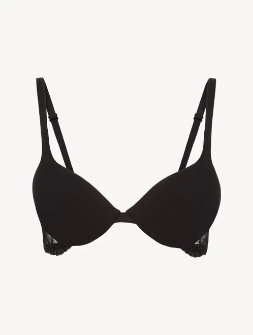 Push-up bra with cups covered in stretch cotton jersey. Floral stretch Leavers lace adorns the sides.