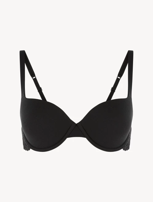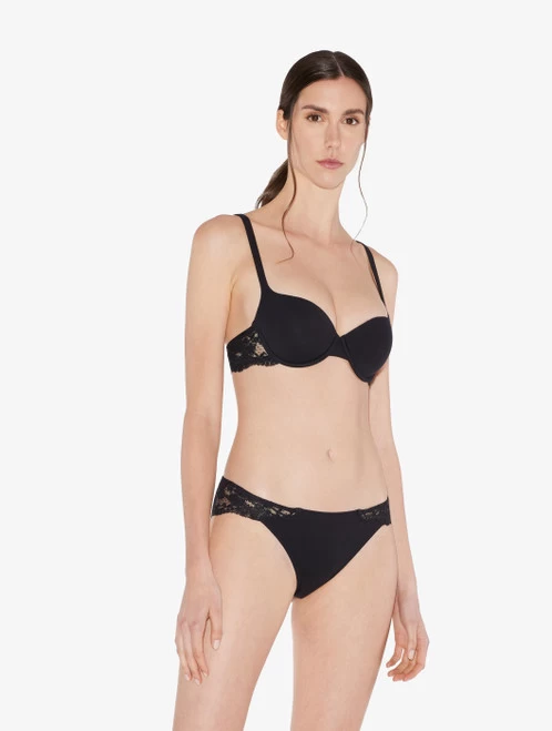 Bra with cups covered in stretch cotton jersey. Floral stretch Leavers lace adorns the sides.