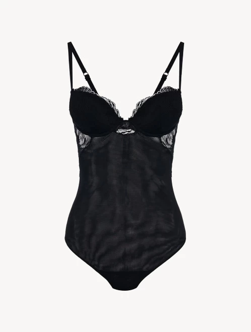 Designed to highlight the natural contours of the body, this stretch Leavers lace bodysuit features underwiring and softly padded cups for added support and lift.