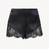 Silk satin pajamas. A masculine cut characterizes the Cossack top with front buttons.