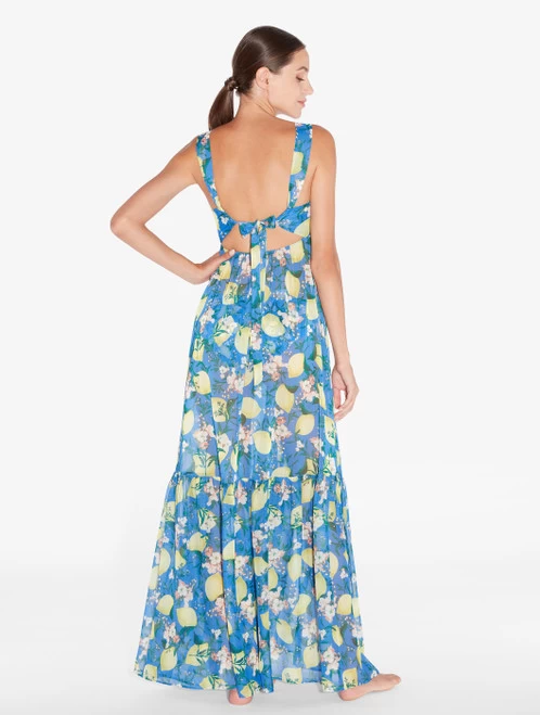 Capturing the irresistible mood of an Italian summer, the Amalfi Twist Maxi Dress in blue features a fresh and vibrant print of lemons and flowers. Cut to a timeless and flattering silhouette, it’s finished with contemporary, cut-out detailing and halterneck ties. Designed with versatile dressing in mind, wear as an effortless cover-up over your striking swimwear or style with sandals or heels for perfectly elegant day-to-night style.