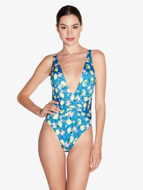 Capturing the irresistible mood of an Italian summer, the Amalfi Twist Swimsuit in blue features a fresh and vibrant print of lemons and flowers. Cut to a striking, contemporary silhouette with a daring V-neck and back, it’s finished with flattering twist detailing. Complete the look with the co-ordinating Short or Long Dress for flawless holiday style.