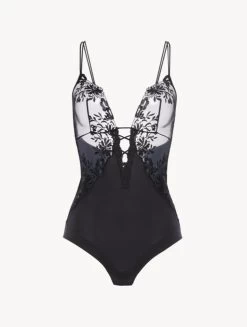 The Zephyr collection highlights La Perla’s heritage of fine craftsmanship, translating this with a youthful twist. Rich floral embroidery and sheer panels add precious accents to these contemporary Lycra pieces. This supple, non-wired bodysuit enhances the curves with shaped tulle inserts and a plunging neckline framed with a trail of delicate flowers. It has a lace-up detail at the bust and thin adjustable shoulder straps.