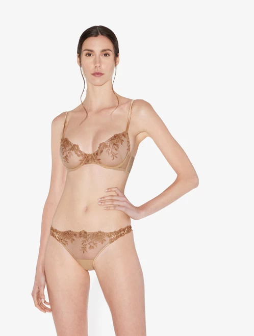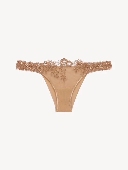 The Zephyr collection highlights La Perla’s heritage of fine craftsmanship, translating this with a youthful twist. Rich floral embroidery and sheer panels add precious accents to these contemporary Lycra pieces. These tulle Brazilian briefs are adorned with delicate flowers that dance across the skin. A low-rise waist and a smooth Lycra back with a cheeky cut ensure an invisible finish beneath slim-fitting clothes.