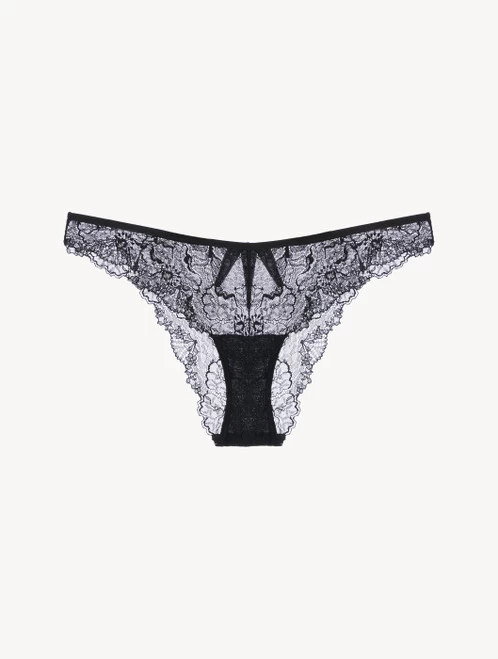 Each powerful piece in the Diamante collection is an expression of modern femininity, made to elevate your most special and intimate moments. The flattering Brazilian Briefs in Black are as seductive as they are sophisticated. Inspired by an iconic piece from the La Perla archive and crafted from exquisite Leavers lace upcycled from our Bologna Atelier for luxurious comfort. Complete the look with the matching Suspender Belt and Triangle Bra or Silk Babydoll.