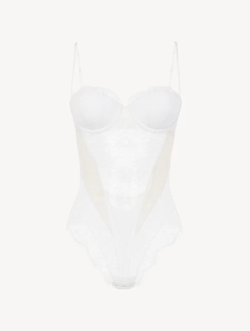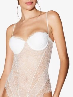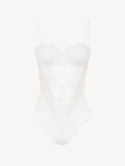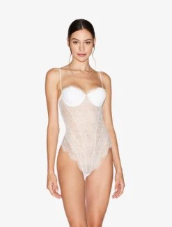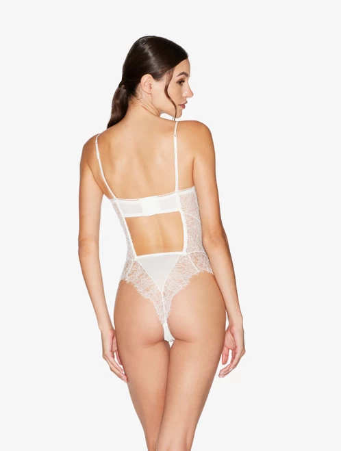 Blending the sensual sophistication of exquisite lace and the luxurious comfort of fluid silhouettes, the Spell On You collection is designed for elevated dressing, everyday. Padded and underwired for a flawless and flattering finish, the exceptional Bodysuit in Natural has removable straps and is meticulously crafted from lace that creates a beautiful trail of winding florals across the skin. Use as the ultimate underpinning to your most empowering looks or style underneath an oversized blazer to give unexpected glimpses of what lies beneath.