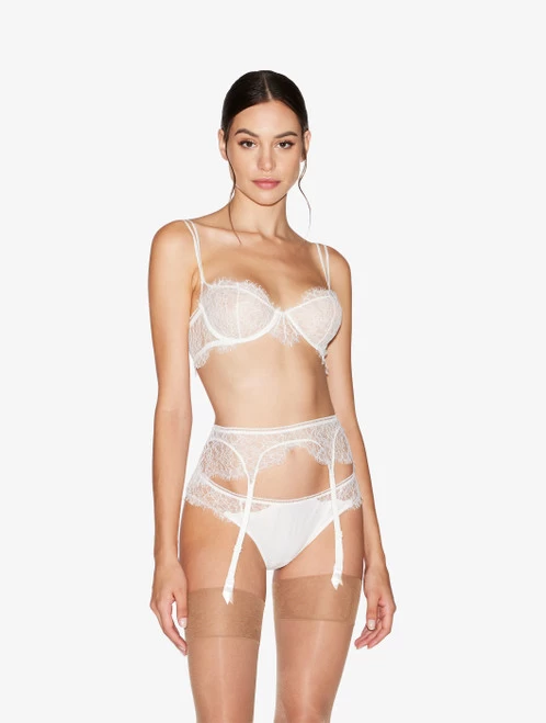 Blending the sensual sophistication of exquisite lace and the luxurious comfort of fluid silhouettes, the Spell On You collection is designed for elevated dressing, everyday. Cut for a flawless and flattering finish, the Suspender Belt in Natural is meticulously crafted from lace that creates a beautiful trail of winding florals across the skin. Complete the look with the co-ordinating Underwired or Push-Up Bra and Brazilian Briefs or Thong.