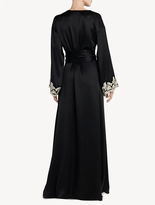 The most luxurious piece in the La Perla Maison collection features embroidered motifs on a tulle background in the same colour as the silk, hand finished with a double-frastaglio technique. A modern yet elegant creation that represents the newest and most exquisite style in the La Perla Maison collection.