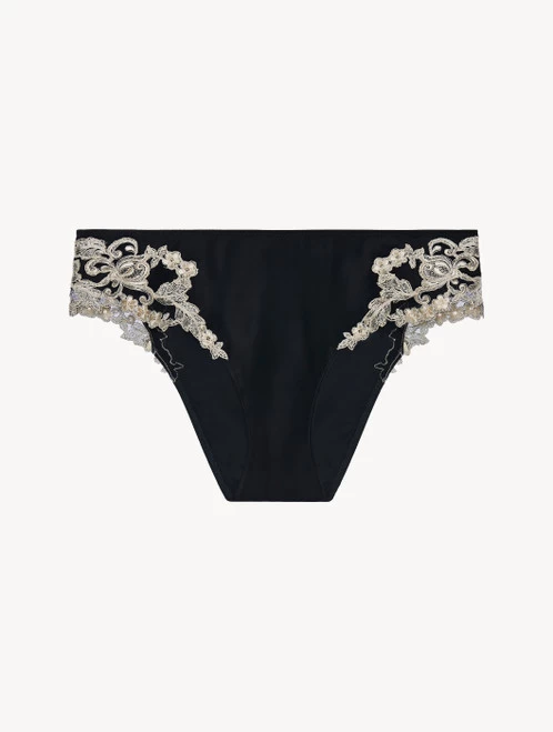 The iconic Maison collection embodies La Perla’s dedication to fine Italian craftsmanship and the most precious materials. These medium briefs from the La Perla Maison collection features hand-embroidered double frastaglio embroidery. This process reproduces the effect of flowers climbing up the body. Made in Italy