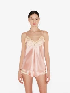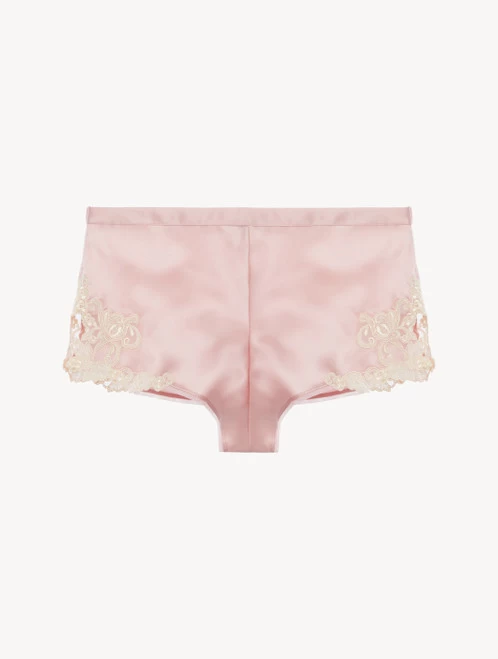 La Perla Maison captures the true spirit of its Made in Italy heritage. Defined by an antique Florentine technique of applying embroidery by hand, this unique piece can take up to two days to create.Crafted from a weightless powder pink silk-satin, the Maison French knickers embody qualities of preciousness and individuality. The hand-placed ivory frastaglio trails seductively to each side creating an alluring effect. The partially elasticated waist ensures comfort while the two button closure is an elegant touch. Pair with matching Maison camisole for a timeless set.