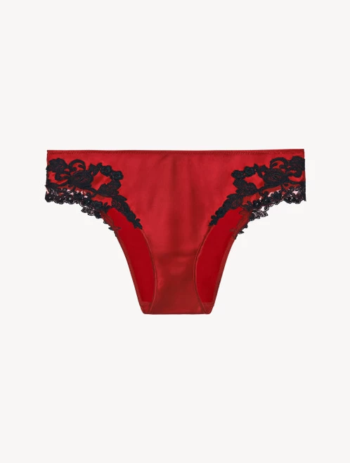 The iconic Maison collection embodies La Perla’s dedication to fine Italian craftsmanship and the most precious materials. These medium briefs from the La Perla Maison collection features hand-embroidered double frastaglio embroidery. This process reproduces the effect of flowers climbing up the body.