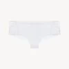 This exquisite thong balances sensuality and comfort. Thin silk straps create a sense of allure, and French Leavers lace leaves a beautiful trail of winding florals against bare skin.