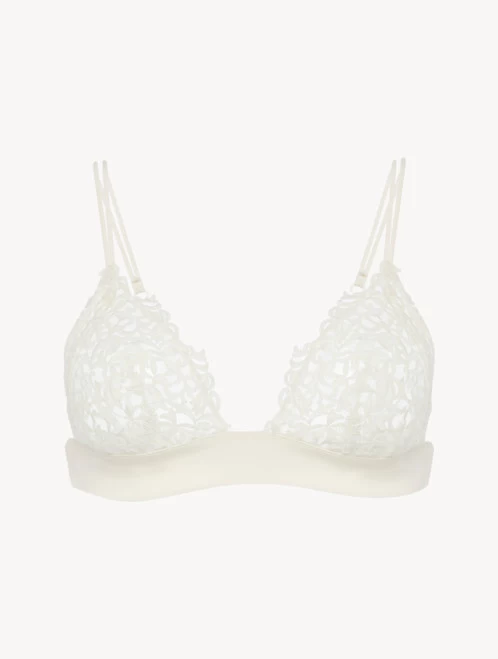 Luxurious triangle bra with macramé detailing, finished in stretch georgette silk. Made in Italy.