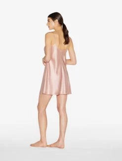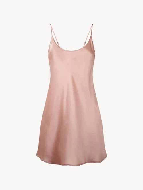 A simple slip in lustrous pure silk satin in pale powder pink. Soft against the skin with a relaxed shape that skims the hips and adjustable shoulder straps for a perfect fit. Wear as a nightdress, as a discreet extra layer under clothing, or reveal its delicate shade beneath a sheer cocktail dress. An exceptionally comfortable and versatile piece. Pair with its matching short silk robe before bed.
