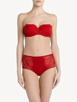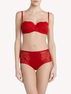 This stretch Leavers lace bandeau bra is ideal for low necklines and has been crafted with underwiring and softly padded cups for added lift and support.