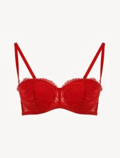This stretch Leavers lace bandeau bra is ideal for low necklines and has been crafted with underwiring and softly padded cups for added lift and support.