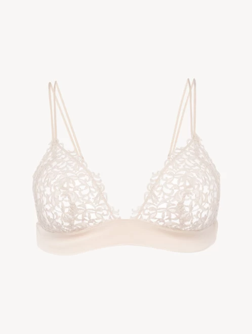 Luxurious triangle bra with macramé detailing, finished in stretch georgette silk. Made in Italy.