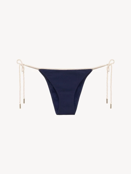 Blending elegant sophistication with a modern nautical spirit, the La Perla Signature Bikini Brief in blue is elevated with the iconic LP monogram in a tonal, stretch jacquard. Cut to a chic, contemporary silhouette with a flawless and flattering shape, it’s finished with contrasting cordonette side ties for timeless resort style. Complete the look with the co-ordinating Bandeau or Triangle Bikini Top.