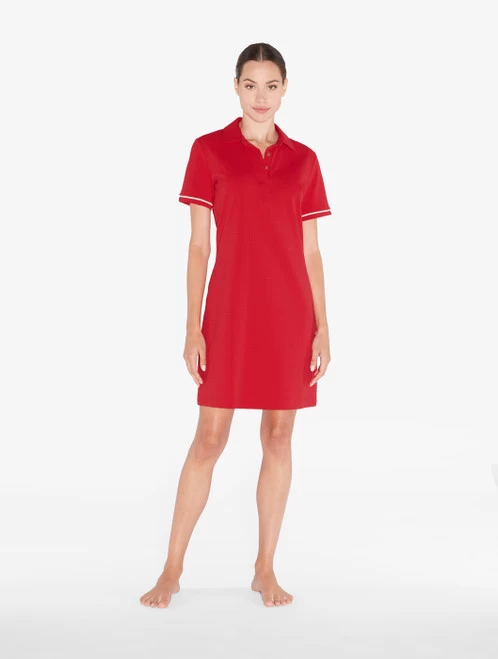 Blending elegant sophistication with a modern nautical spirit, the La Perla Signature Polo Dress in red is elevated with the iconic LP monogram in a tonal jacquard. Cut to an effortlessly chic, contemporary silhouette, it’s finished with contrasting cordonette detailing at the sleeves for timeless resort style. Wear as the perfect cover-up for the co-ordinating swimear or style with sandals or heels for versatile day-to-night dressing.