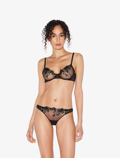 The Zephyr collection highlights La Perla’s heritage of fine craftsmanship, translating this with a youthful twist. Rich floral embroidery and sheer panels add precious accents to these contemporary Lycra pieces. This underwired bra is crafted from the finest tulle, decorated with delicate flowers. Underwiring offers support while soft unpadded cups maintain a supple, sensual feel.