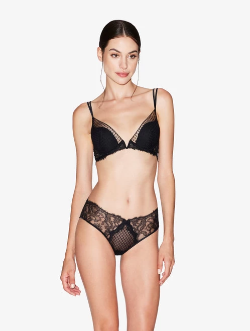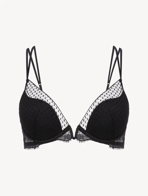 Meticulously crafted from exquisite layers of Leavers Lace and delicate honeycomb mesh that reveal and conceal, the Honeycomb Shadows Push-Up Bra in Onyx is the embodiment of true perfection. Radiating sensual sophistication, it’s underwired and padded to enhance and elevate and designed to flawlessly underpin your most daring looks. Complete the look with the matching briefs or layer under a shirt or blazer, left a touch unbuttoned to offer glimpses of what lies beneath.