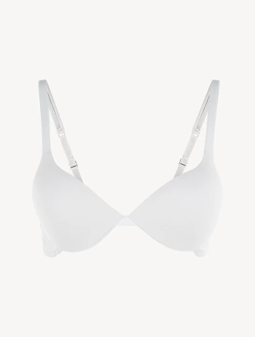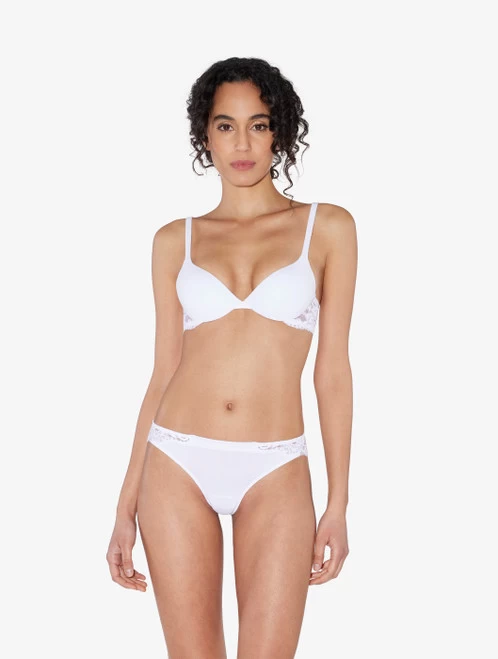 Bra with cups covered in stretch cotton jersey. Floral stretch Leavers lace adorns the sides.