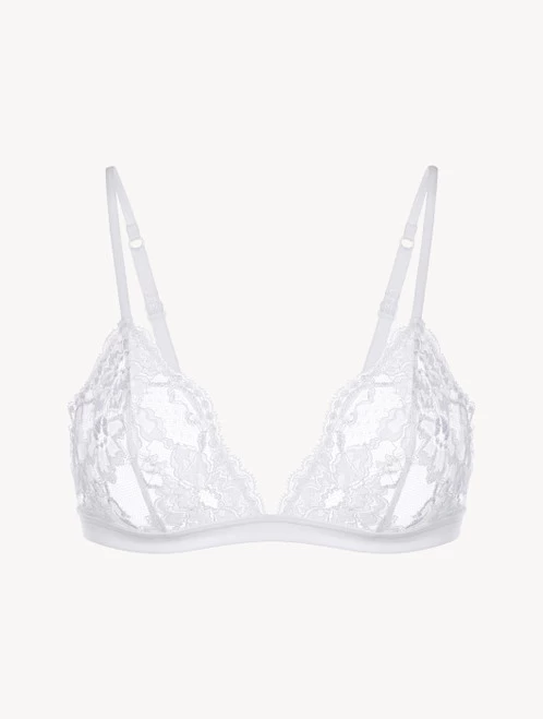 Irresistibly comfortable, this triangle bra from the Souple collection has been crafted from exquisite stretch Leavers lace. Non-wired with unpadded cups, it provides natural hold and shaping.